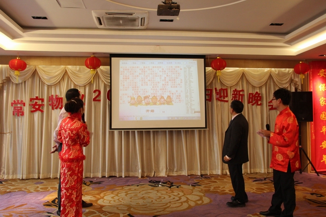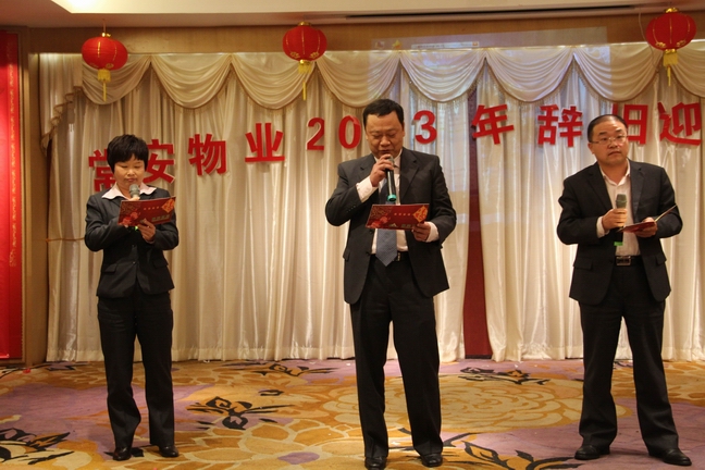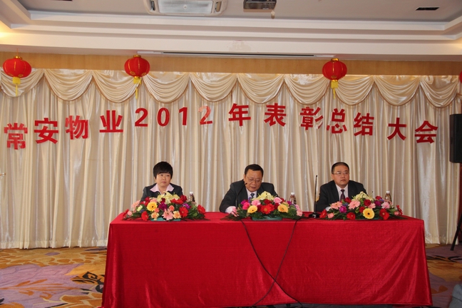 2013年1月25日常安物業(yè)召開了2012年度表彰總結(jié)大會及2013年辭舊迎新晚會。參加會議的主要人員有副總經(jīng)理-黃國義、副總經(jīng)理-蔡愛花、董事長-張武。會議主要對公司在2012年度的各項工作進(jìn)行了匯報與總結(jié),并制定了2013年的發(fā)展戰(zhàn)略。會議中對2012年度優(yōu)秀員工及先進(jìn)服務(wù)中心及主任進(jìn)行了表彰,并與各服務(wù)中心簽訂了2013年目標(biāo)管理責(zé)任書。