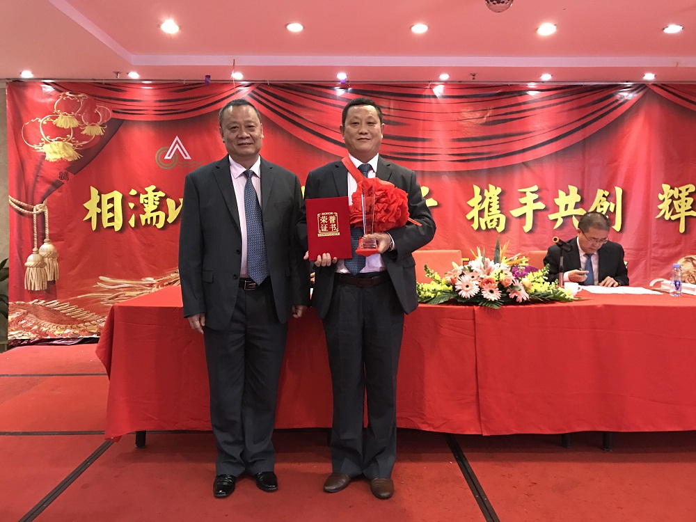 3、張總代表公司領(lǐng)導(dǎo)班子給20年老員工(何國兵總經(jīng)理助理和羅韶坤主任)頒發(fā)“二十年長期服務(wù)獎(jiǎng)”金牌,表彰老員工20年以來對(duì)公司的付出,鼓勵(lì)公司所有員工再接再厲。