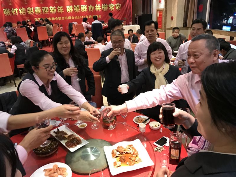 5、在場(chǎng)員工與老員工共進(jìn)豐富晚宴,晚宴中,公司領(lǐng)導(dǎo)班子端起酒杯到每一桌送去祝福,并向退休老員工發(fā)放慰問津貼。